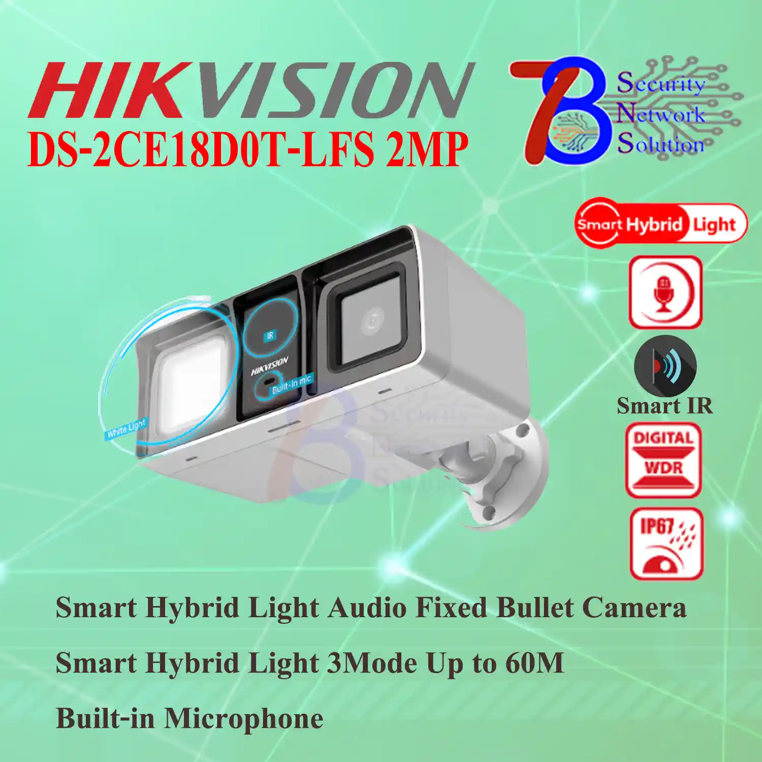 DS-2CE18D0T-LFS Hikvision Smart HybridLight HDTVI 2MP กล้องวงจรปิด (ไมค์)